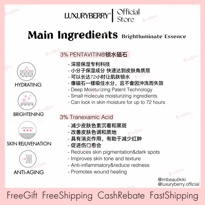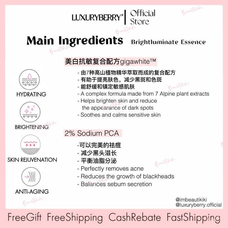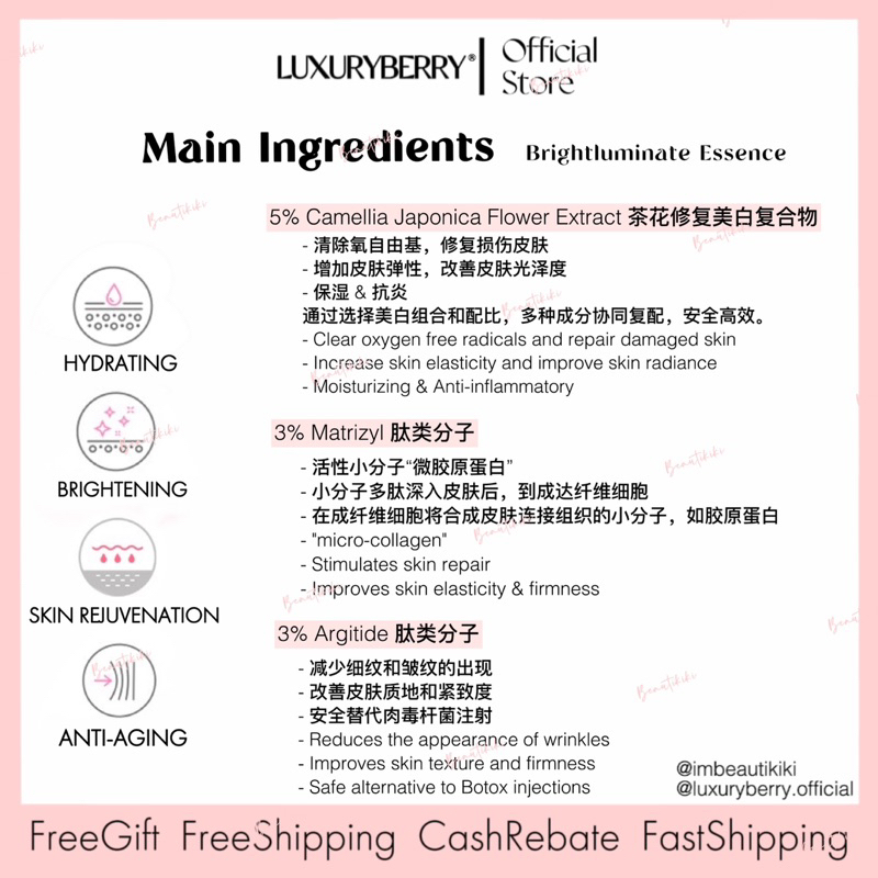 现货| 免邮 Luxuryberry Brightluminate Whitening Repair Essence Serum 35ml OFFICIAL Luxury berry