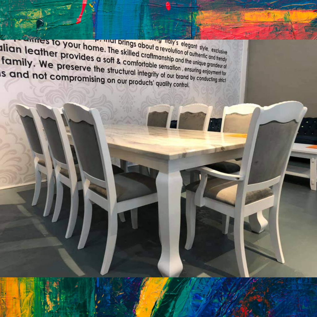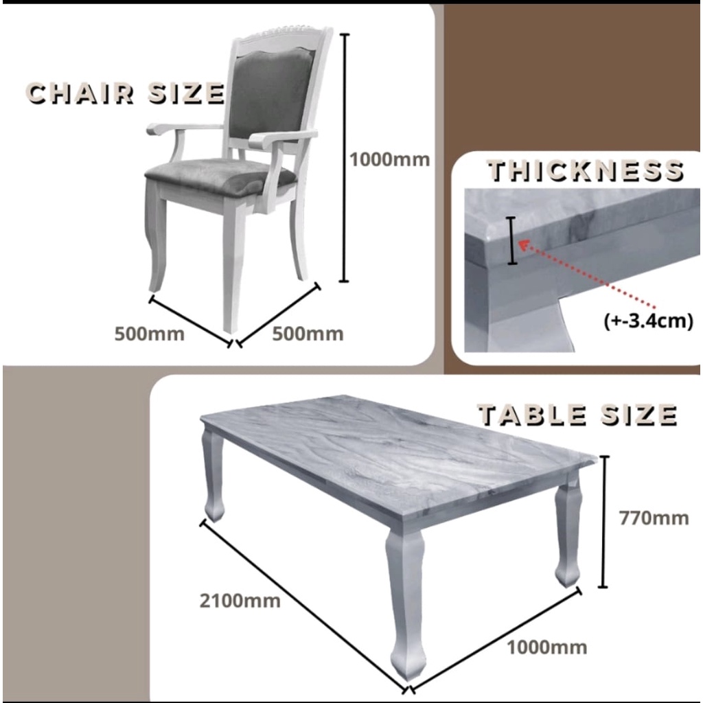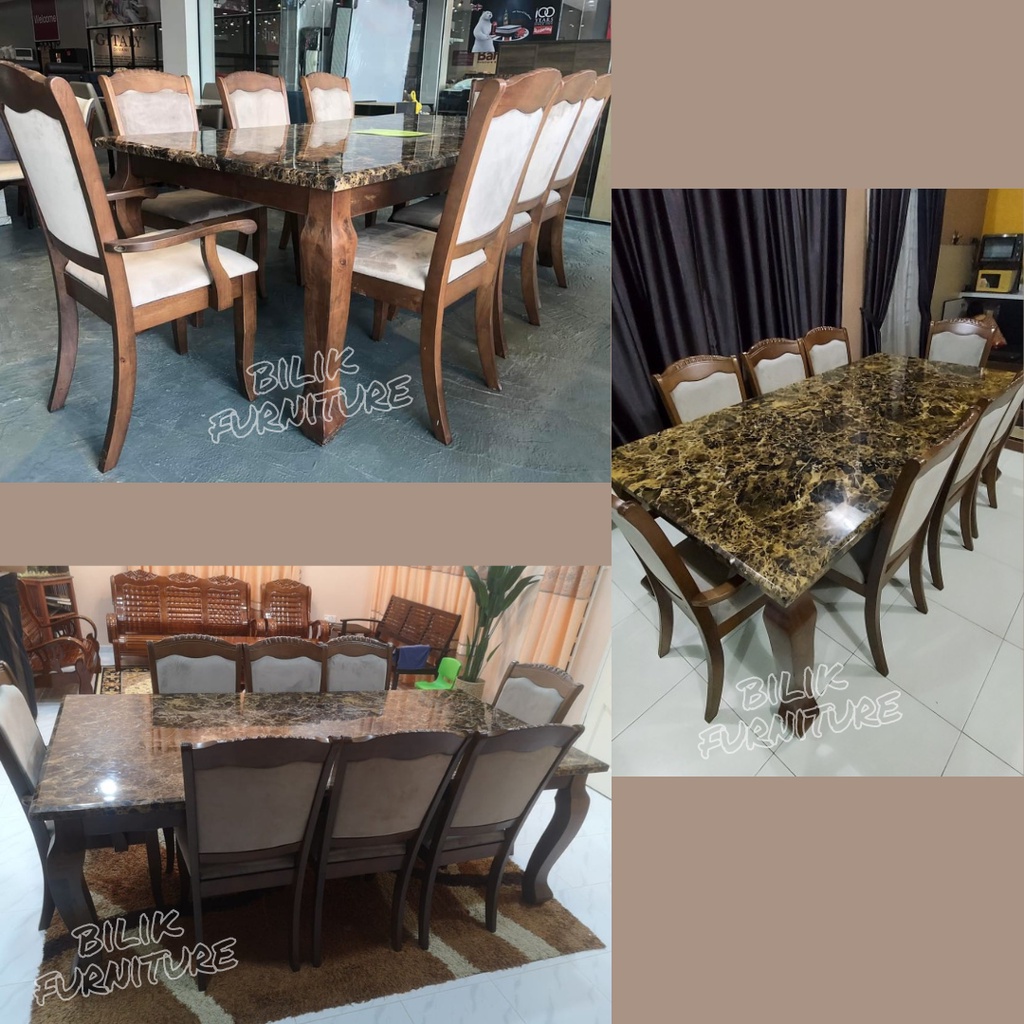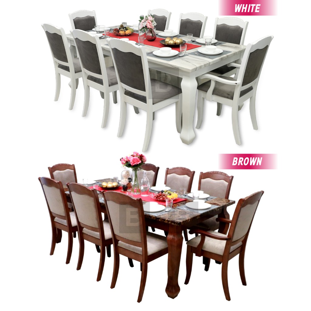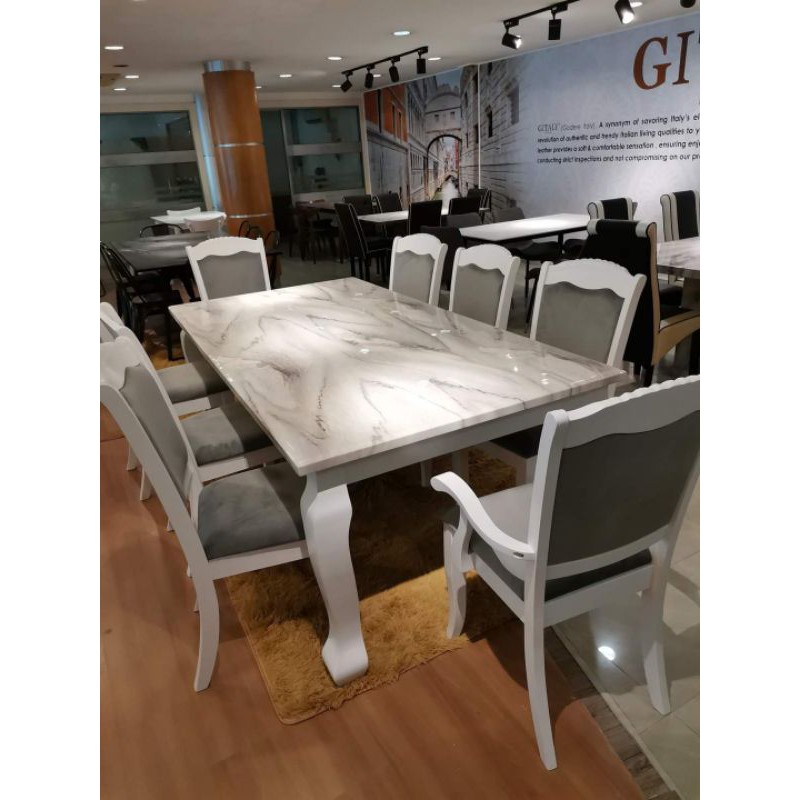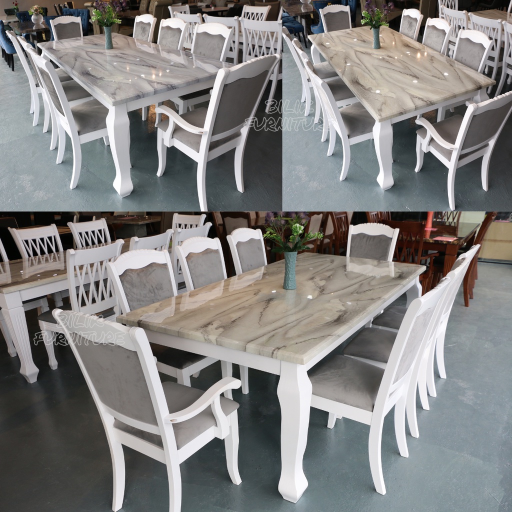 Free Intsall- Dining Set | Marble Table | 1+8 | 1 Meja 8 Kerusi | Set meja makan 8 kerusi | Brawn & White