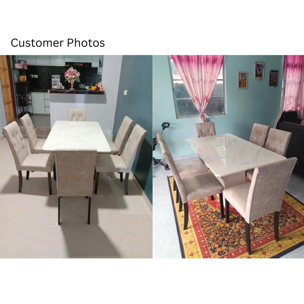 Free Intsall- Dining Set | Marble Table | 1+8 | 1 Meja 8 Kerusi | Set meja makan 8 kerusi | Brawn & White