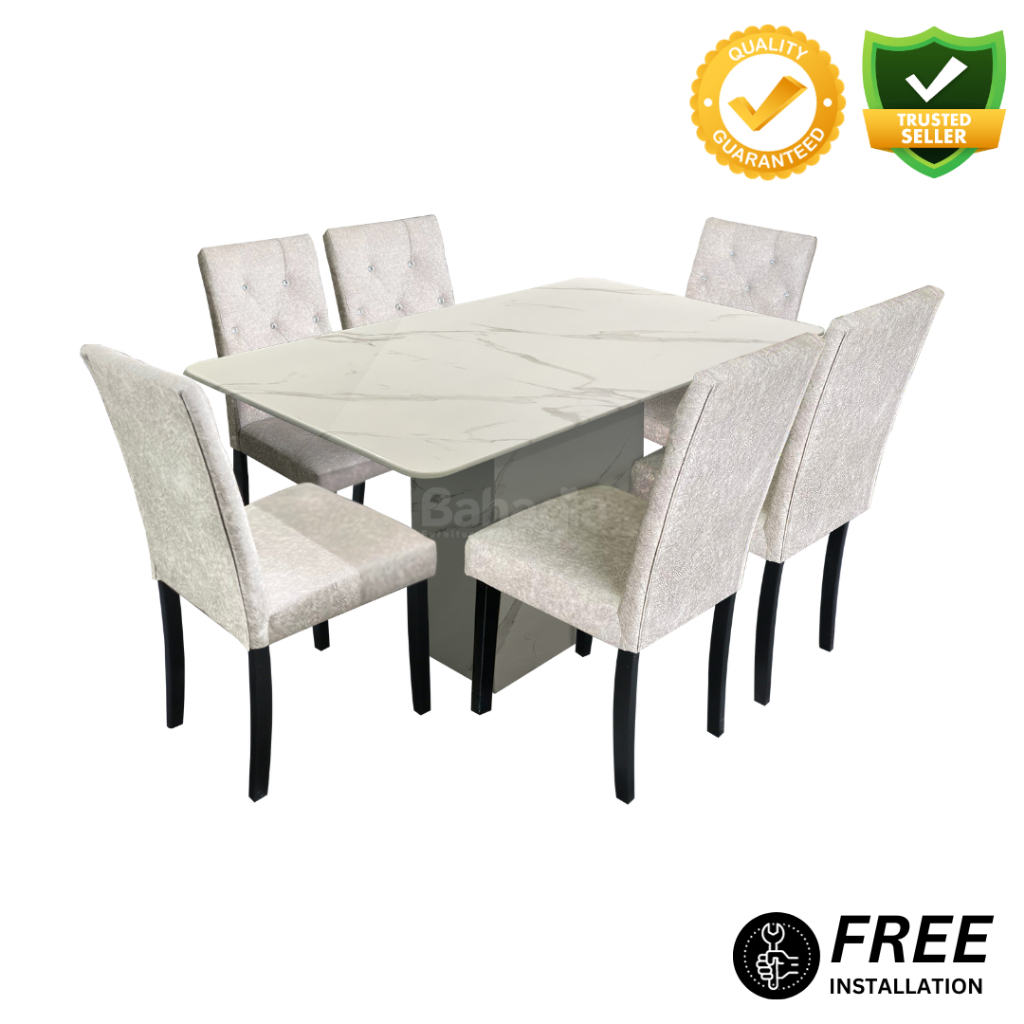 Pre-Order Free Install Bahagia Belmond Marble Table Dining Set 1+6 (140x80cm) ~ Dining Room ~ 餐桌椅 96-16+149-02