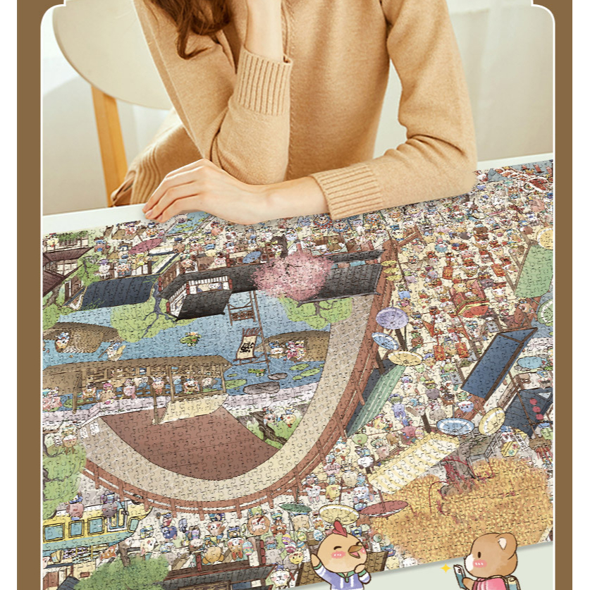 Adult Ultra-High Difficulty Cartoon Cute Animal Version Qingming River Map Fairy Tale Decompression Puzzle Healing Multiple Themes Paper 2,000pcs