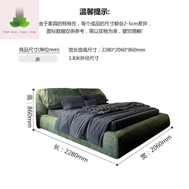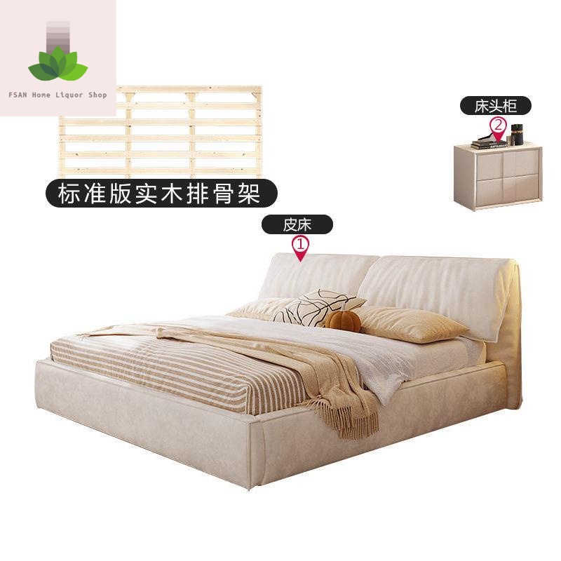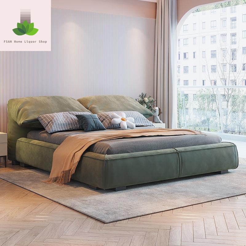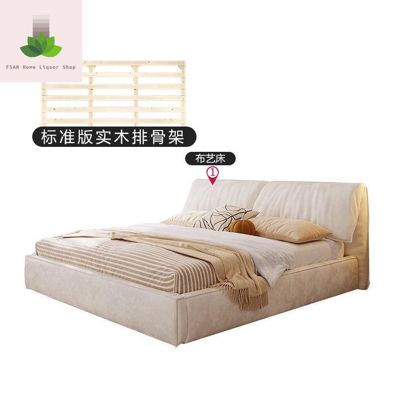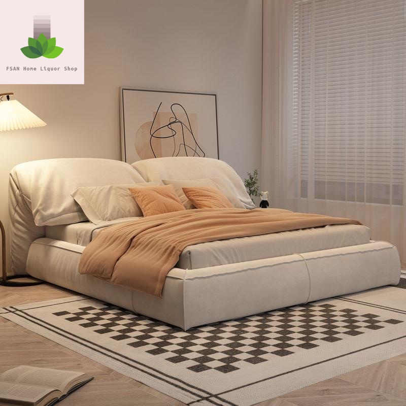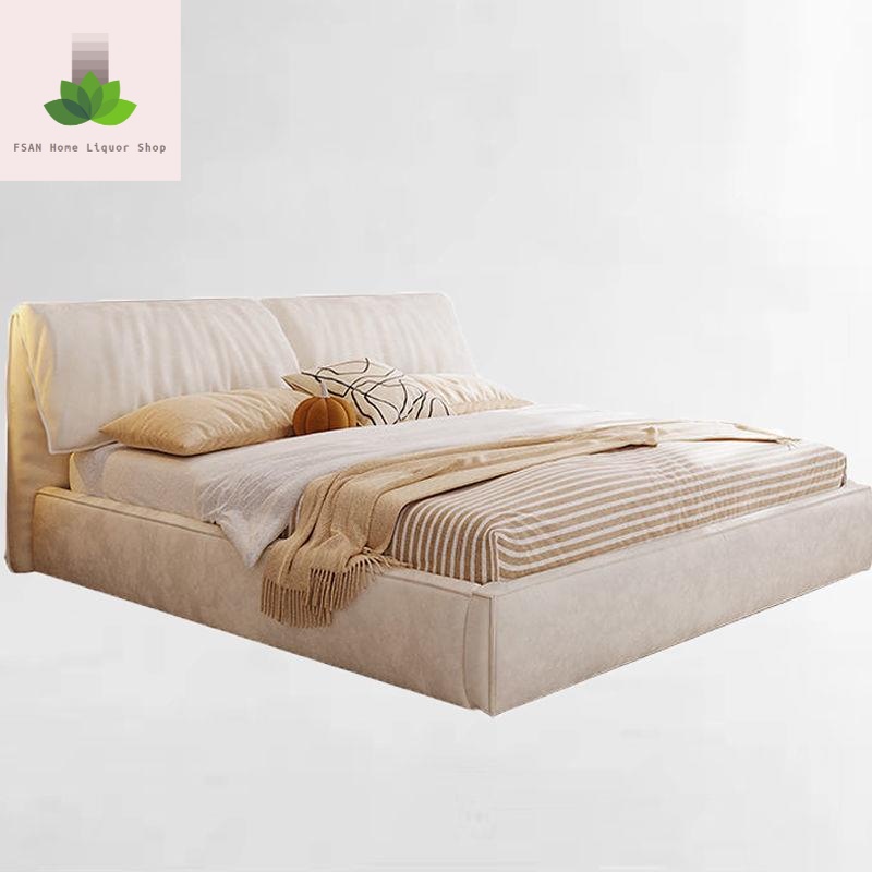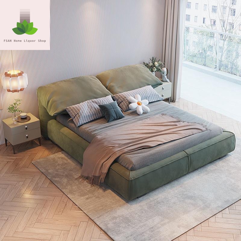 2022 New Fabric Bed Tatami Marriage Bed Master Bedroom Modern Simple Japanese Style Wabi-Sabi Floor Bed Double