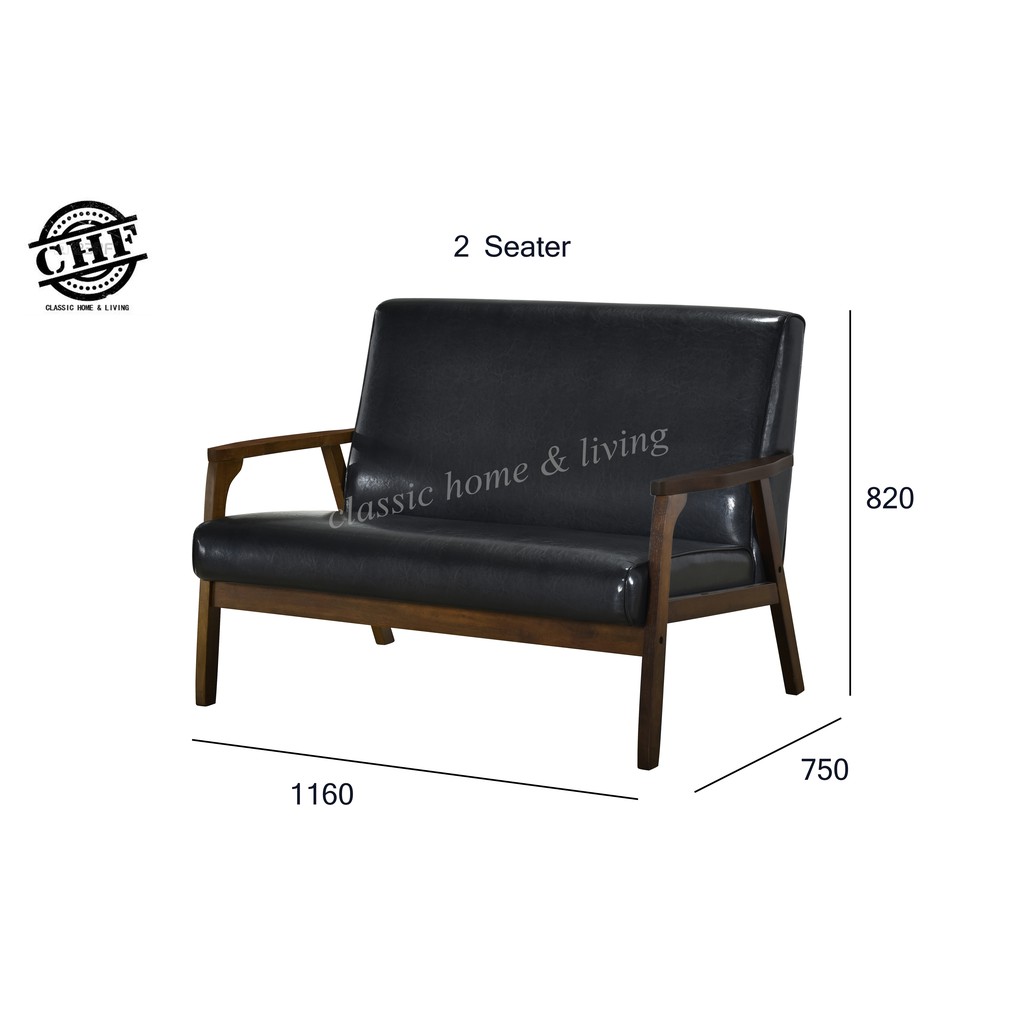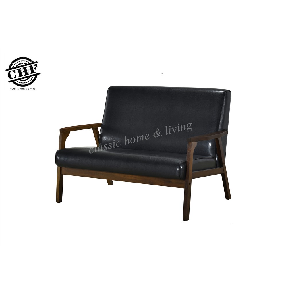 CHF NICO PU 2 Seater Wooden Sofa / Solid Wood Frame / Thick and Comfortable Fabric - Black PU Leather