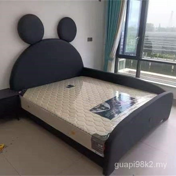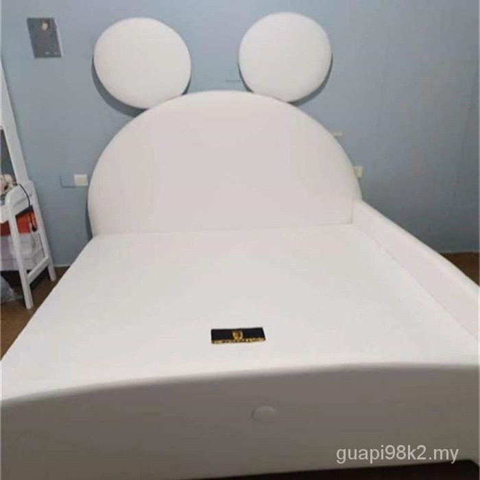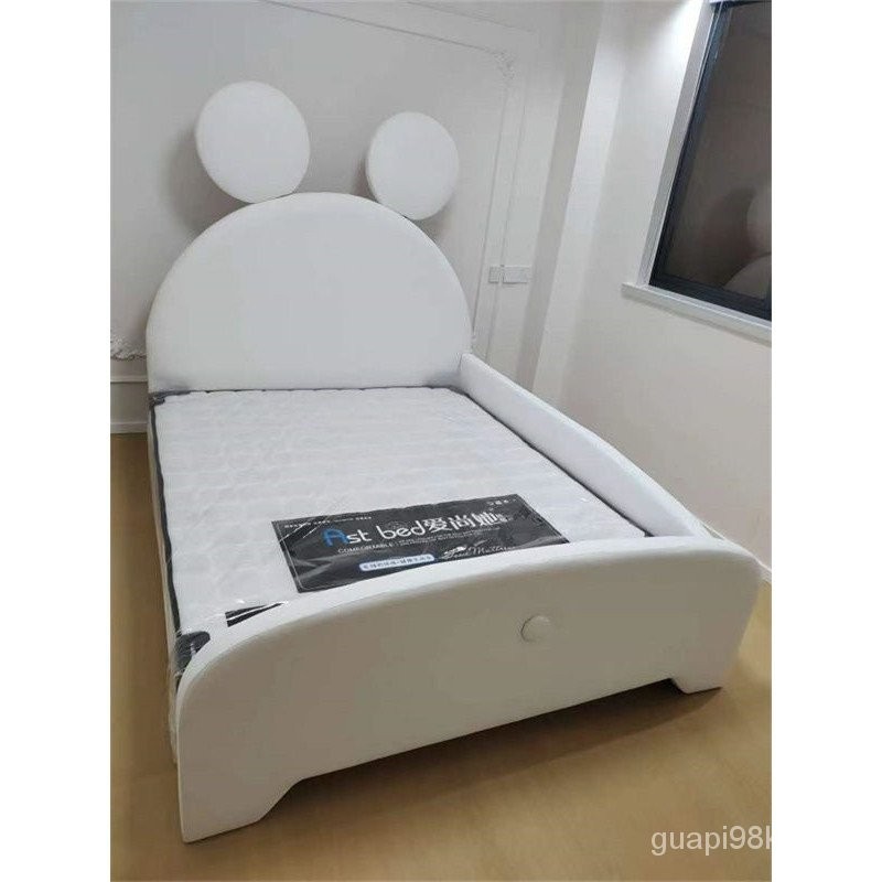 Children Children's Bed Children Cartoon Bed Bed Bedroom Childlike Light Luxury Small Apartment Single Bed with Guardrail Mickey Mouse Technology Leather