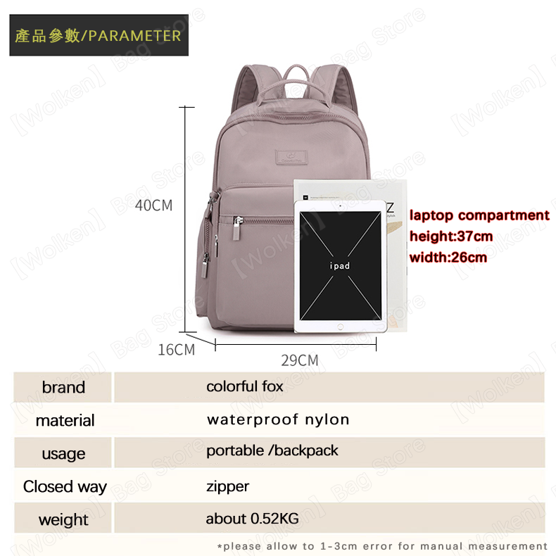 colorful foxlarge capacity unisex backpack waterproof laptop backpack can be inserted into trolley case