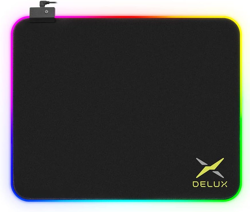 DELUX Large RGB Gaming Mouse Pad, Non-Slip Rubber Base, Waterproof Computer Mouse Mat with Durable Stitched Edges, Great for Office and Gaming, Portable and Durable, 17.5 x 14 Inch (GP003-RGB)
