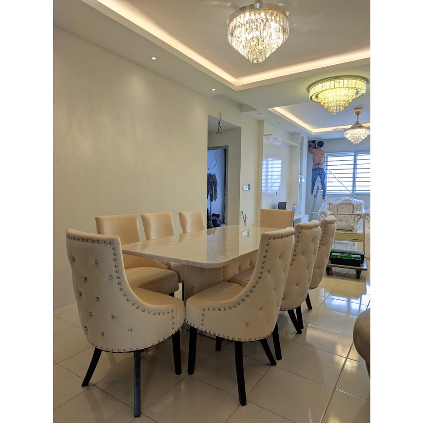 Free Intsall- Dining Set | Marble Table | 1+8 | 1 Meja 8 Kerusi | Set meja makan 8 kerusi | Brawn & White