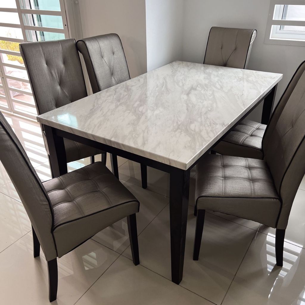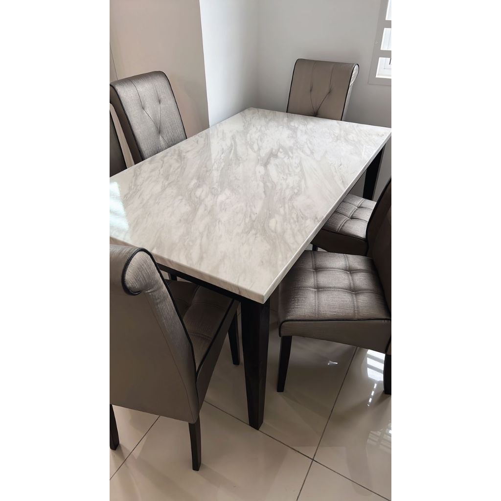 familystar2u Laminate Marble Top Dining Table with 6 Parson Chair 1+6 / Marble Kerusi Makan dan Meja Makan Set 1+6