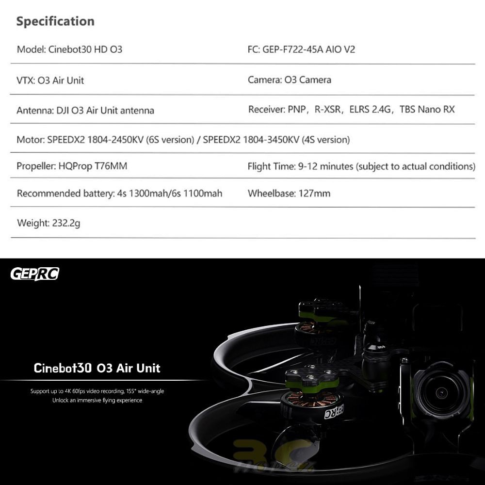 GEPRC Cinebot30 HD w/ DJI 03 Air Unit 127mm 3Inch 6S FPV Drone GEP30HD-DJI03