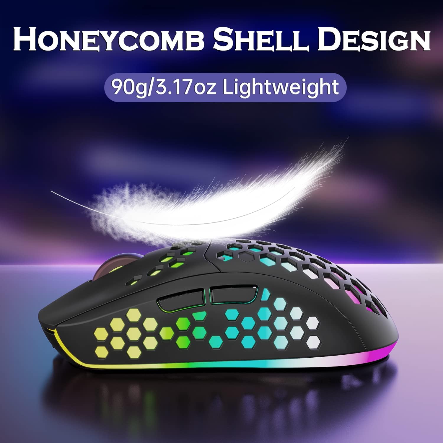 【Lightweight Gaming Mouse】The UHURU WM-08 gaming mouse features a honeycomb shell that weighs only 90 grams, which is light but still durable. The honeycomb shell helps reduce weight to protect your wrist when you are gaming or working.