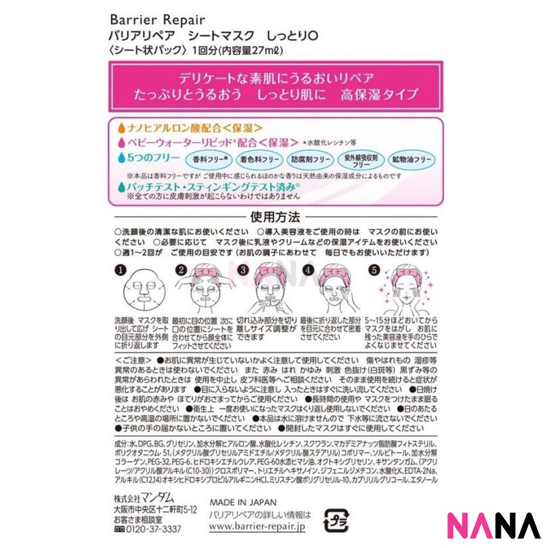 MANDOM Barrier Repair Facial Mask Moist 5 Sheets