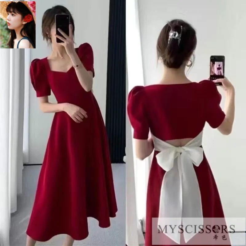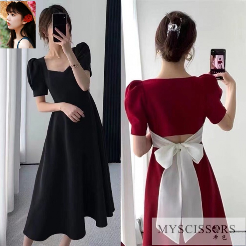 MYSCISSRS现货Christmas dressM-8XLplus size dress連身裙特大码胖mm300斤收腰显瘦连衣裙夏季法式赫本小黑裙气质宽松a字裙大碼女裝plus size extra large size oversize fat big size women dress