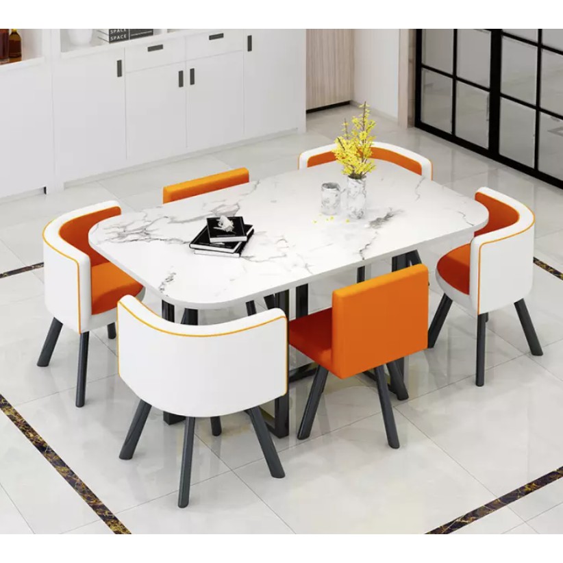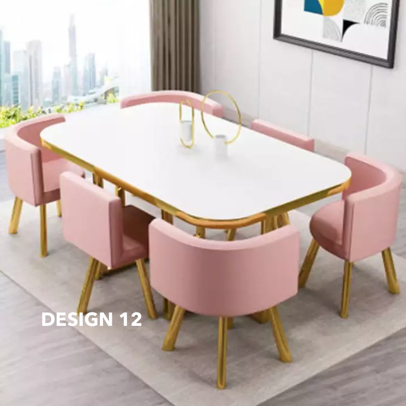 Nordic Design Premium 6 Seater Modern Dining Set with Dining Table with 6 Chairs Meja Makan Set