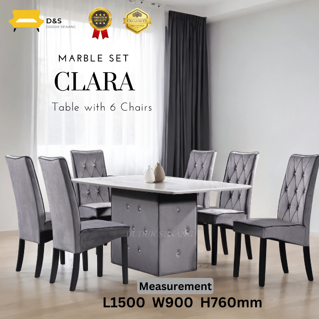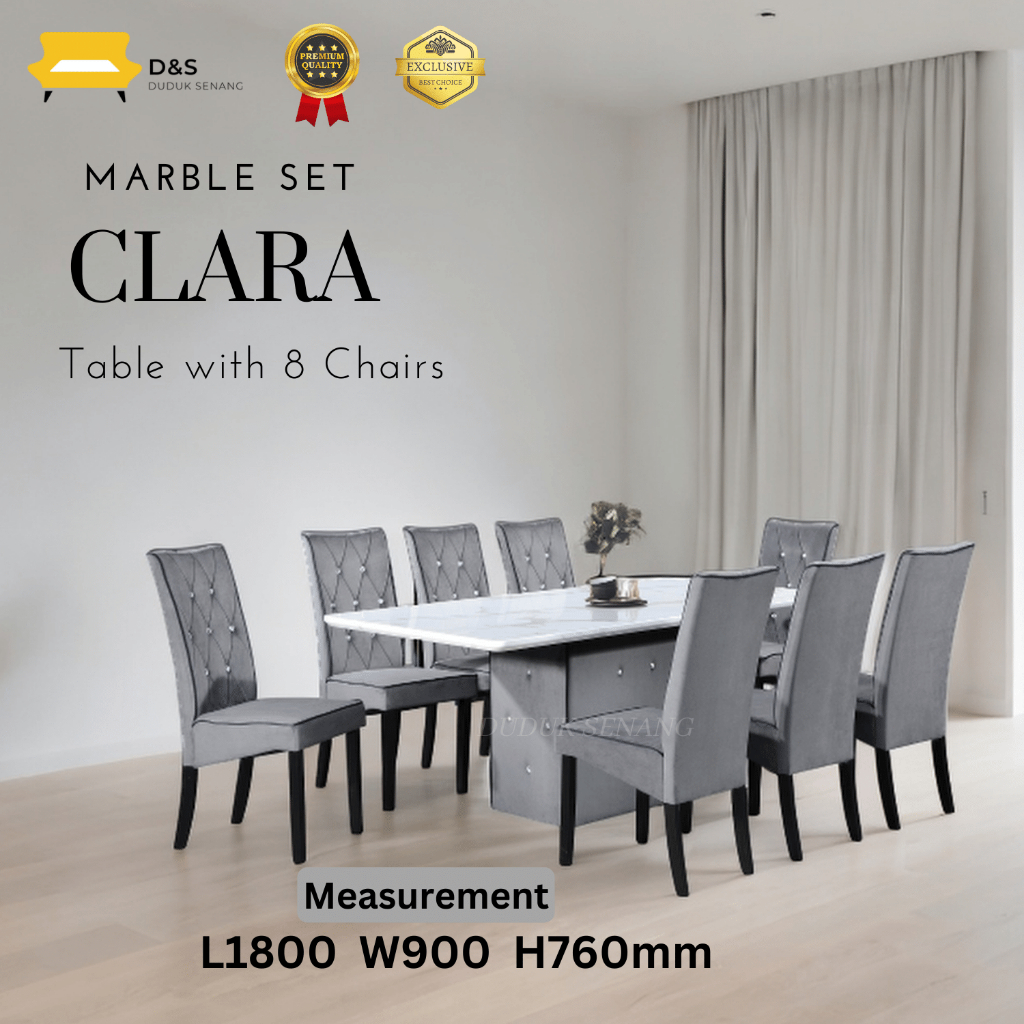 [PROMO KAW KAW FREE SHIPPING] CLARA Marble Dining Set 6 And 8 Chair/ Set Meja Makan 6 dan 8 kerusi