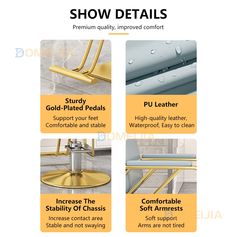 (Ready Stock) Hairdressing barber chair stainless steel lift hair salon armchair adjustable height