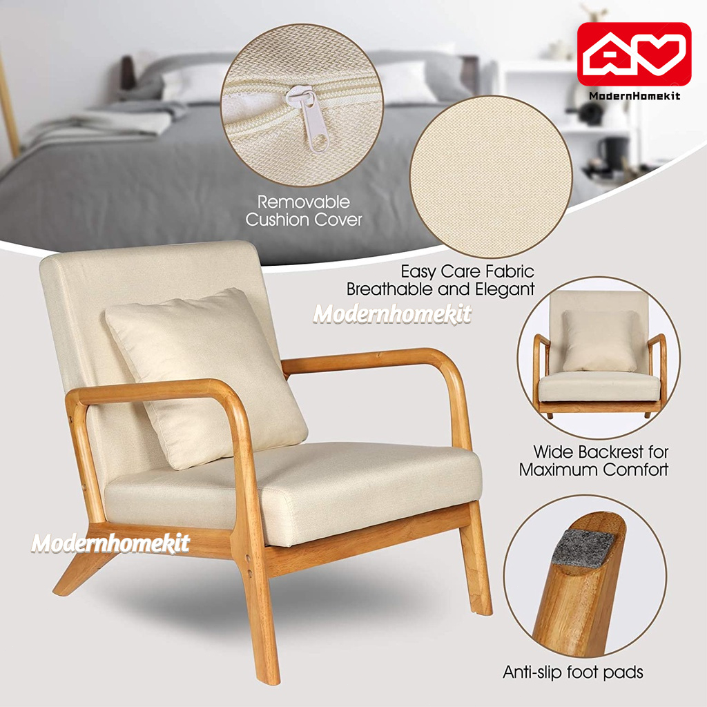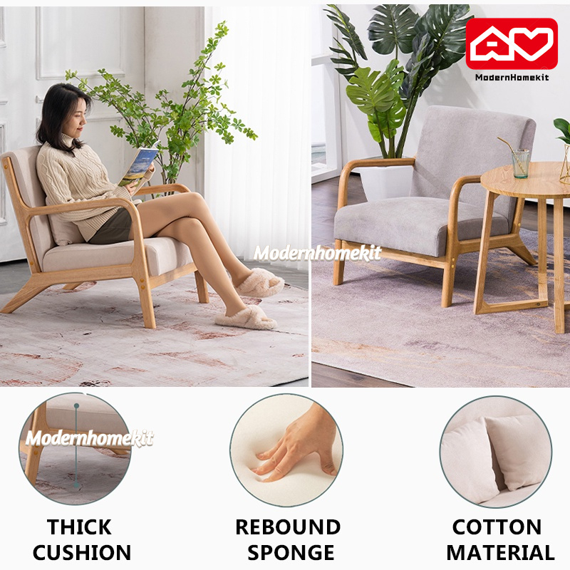 Ready StockNordic Arm Chair Solid Wood Single Sofa Chair Dining Home Wing Chair kerusi kayu Leisure Chair