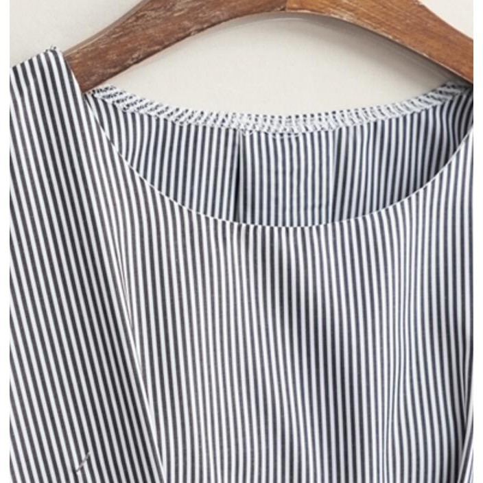 Ready StockWoman tops loose lantern sleeves plus size casual lacing stripe linen blouse womensclothing tops