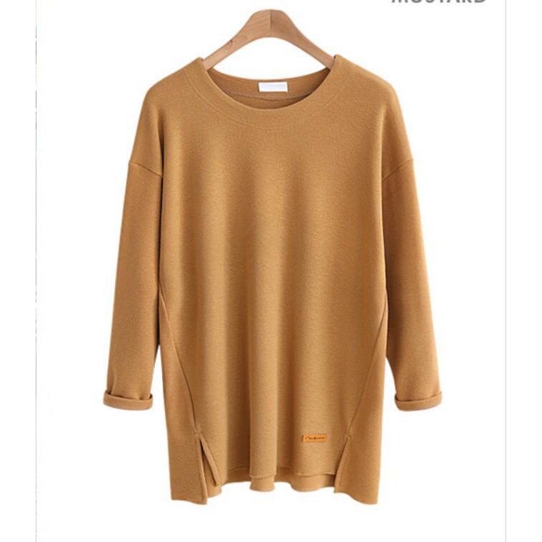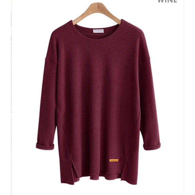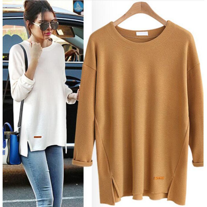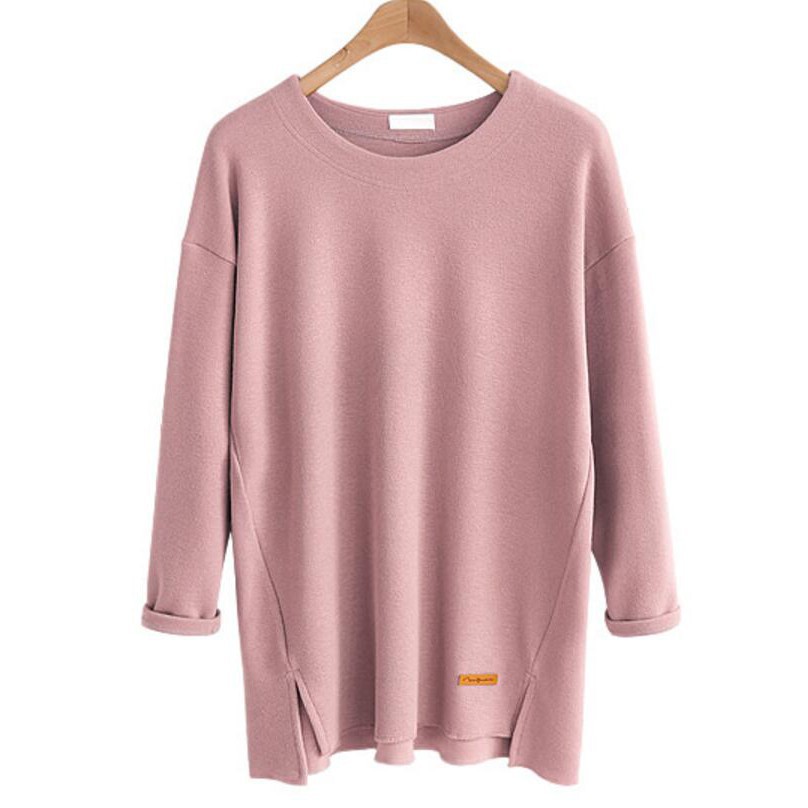 Ready StockWomen tops loose long-sleeved T-shirt casual Split plus size cotton T-shirt womensclothing laceblouse
