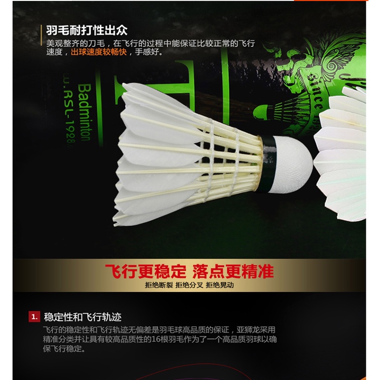 RSL Yashilong Premium Classic RSLC Class Badminton Preferred Goose Feather Game Ball RSL5 Outdoor Training Durable Game Ball 12pcs