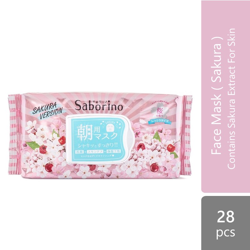 Saborino Facial Sheet Mask 28pcs ( Good Night Morning Sakura ) | Skin Moisturized While You Are Sleeping