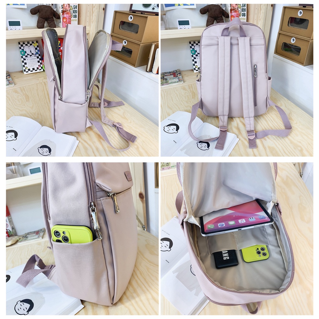 Solid Color Backpack Portable 14 inches Shockproof Laptop Bag Large-capacity Waterproof 15 16 inches Multi-layer Student Backpack Korean Travel Bag Reasonable Design