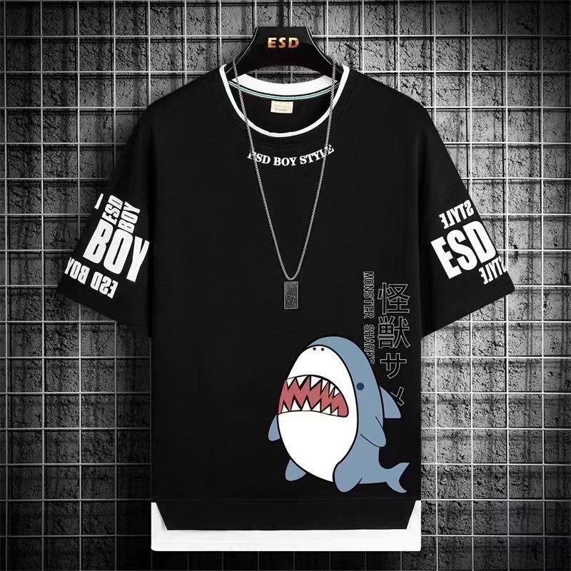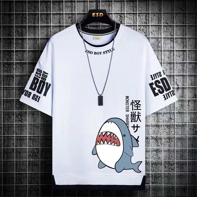 Summer Shark Short Sleeve T Shirt Men Casual Trend Loose Korean Sports Top Baju T Shirt Lelaki