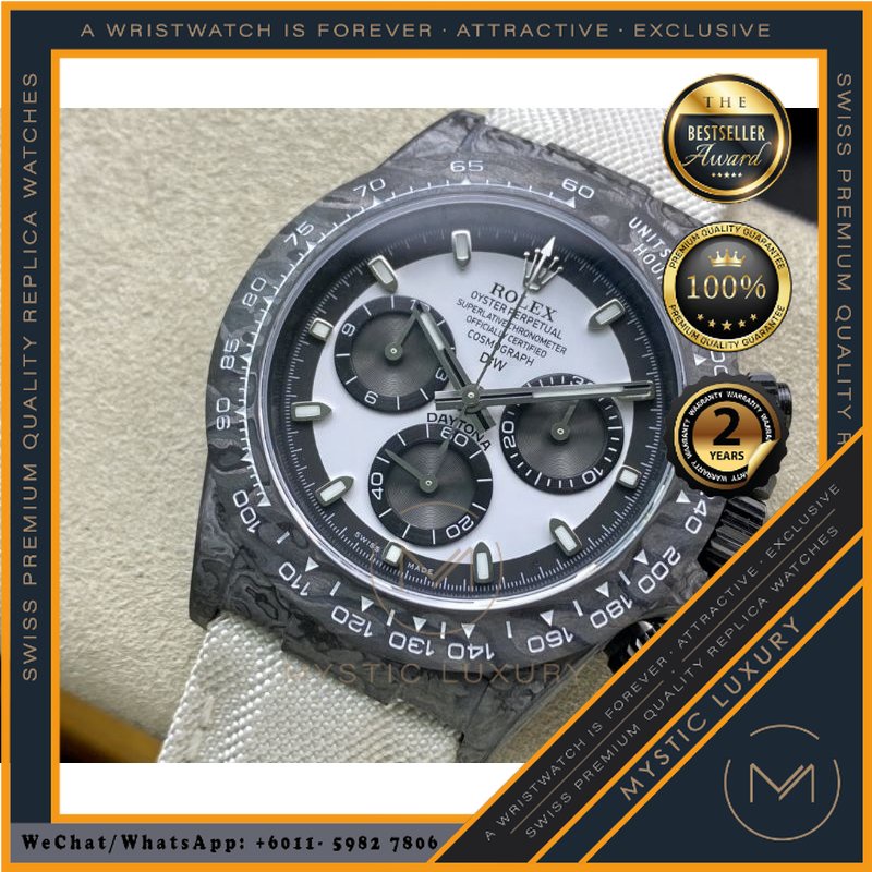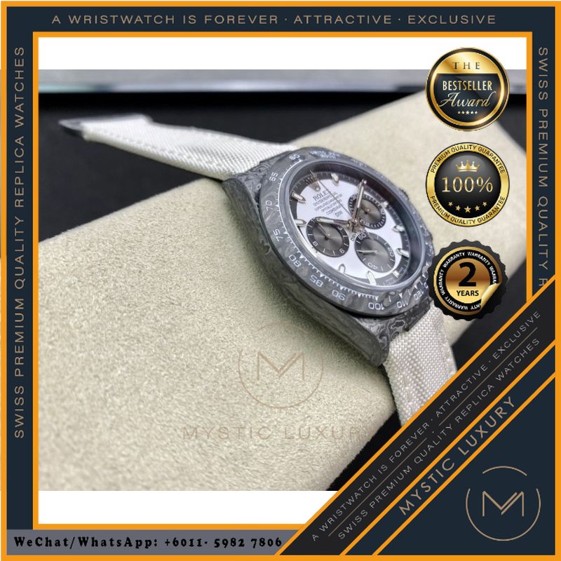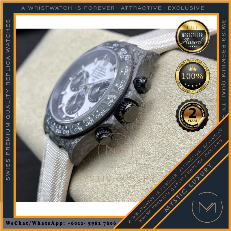 SWISS WATCH RL ROLEXS CARBON COSMOGRAPH DAYTONA CREAM DIAL 4130CR 40MM - MYSTIC LUXURY WATCH AUTOMATIC JAM TANGAN