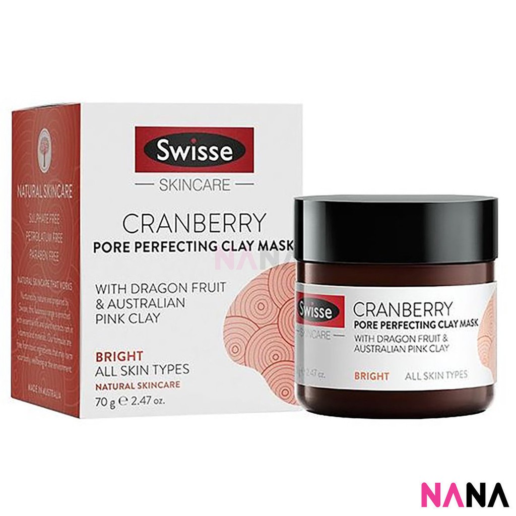 Swisse Skincare Clay Facial Mask for All Skin Type 70g (Manuka Honey Detoxifying / Cranberry Pore Perfecting / Blood Orange Brightening / Hyaluro-Natural Hydrating / Matcha Tea Anti-Pollution)