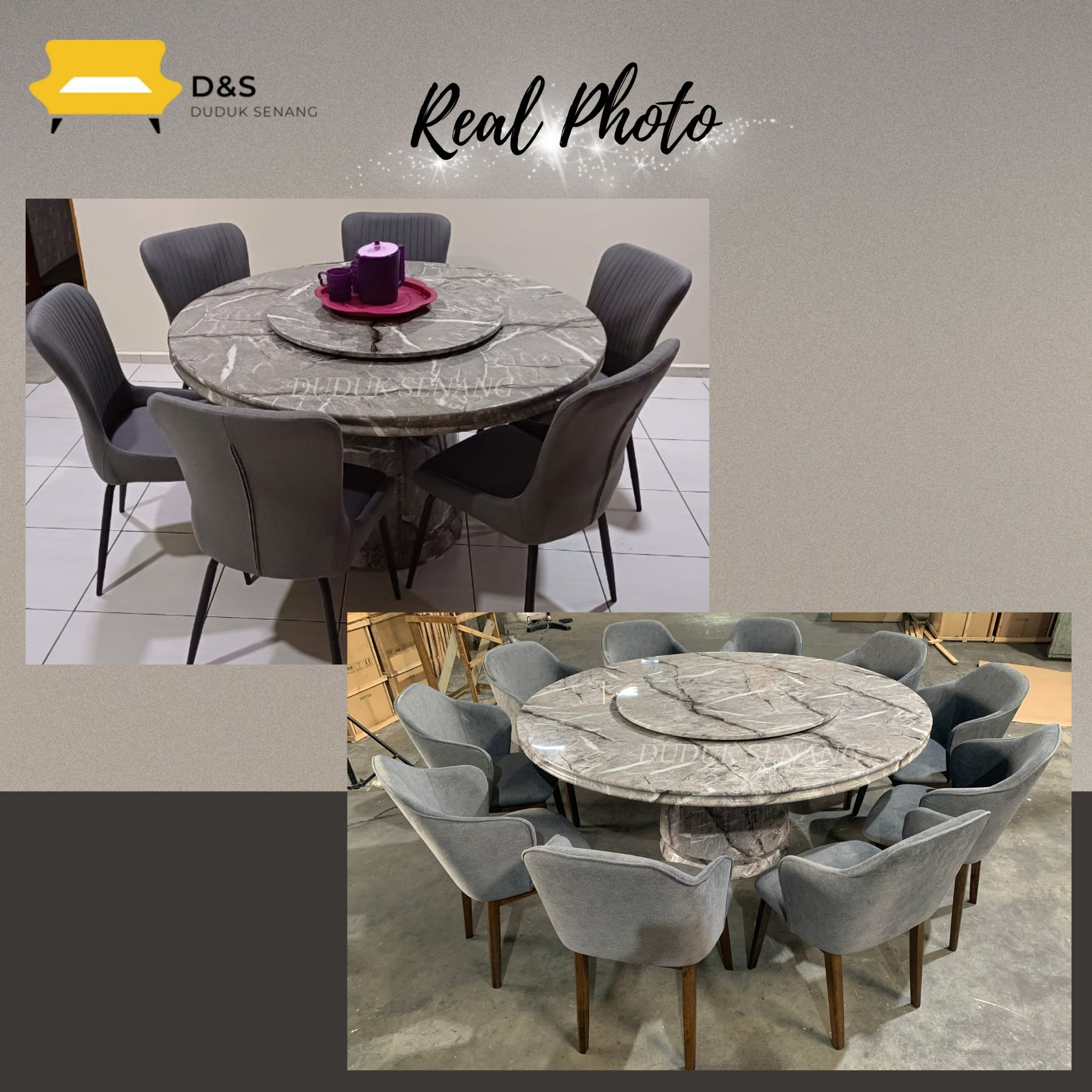 Free Intsall- Dining Set | Marble Table | 1+8 | 1 Meja 8 Kerusi | Set meja makan 8 kerusi | Brawn & White