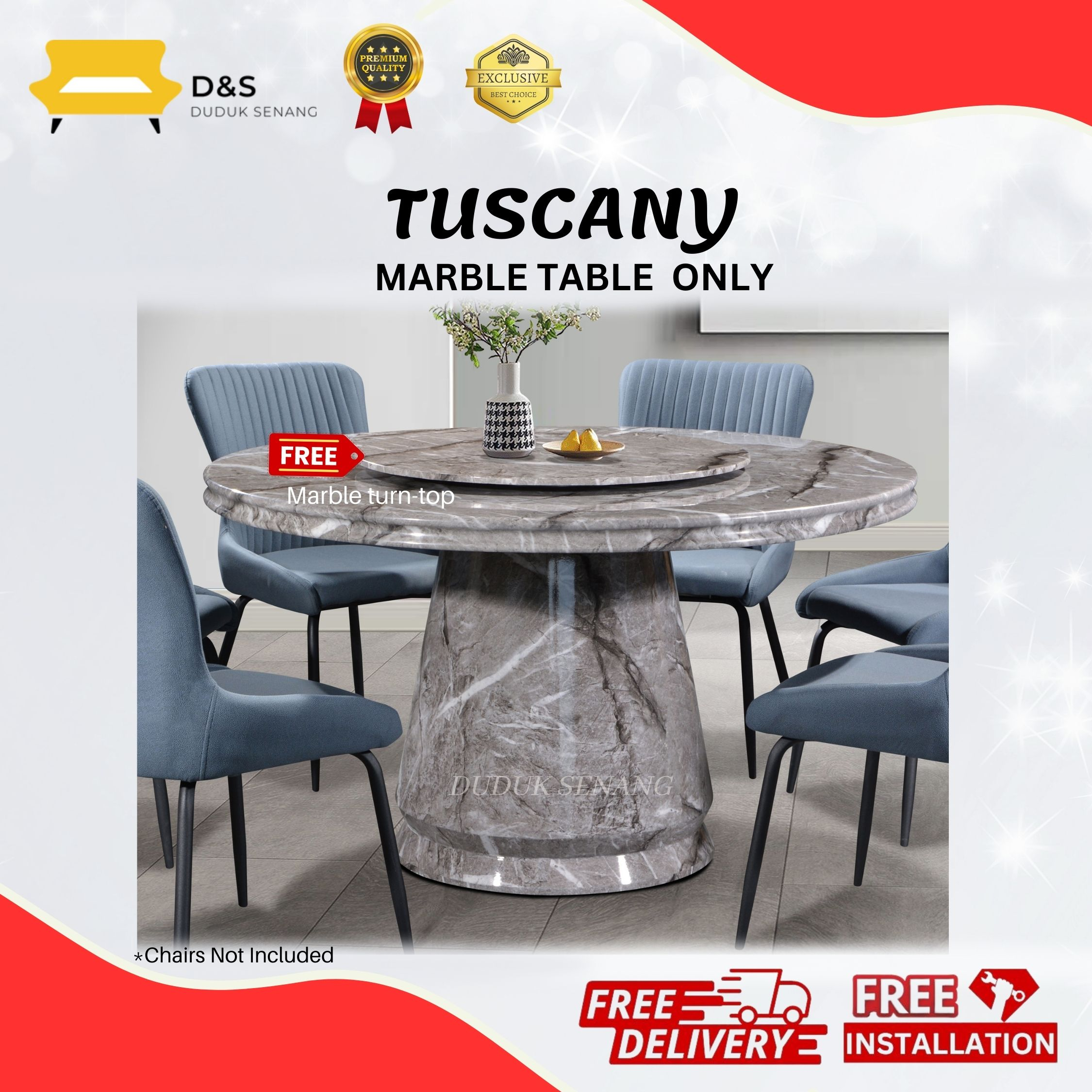 TUSCANY Marble Table Only / Meja Marbel Sahaja (FREE REVOLVING TOP)