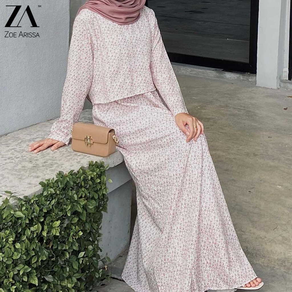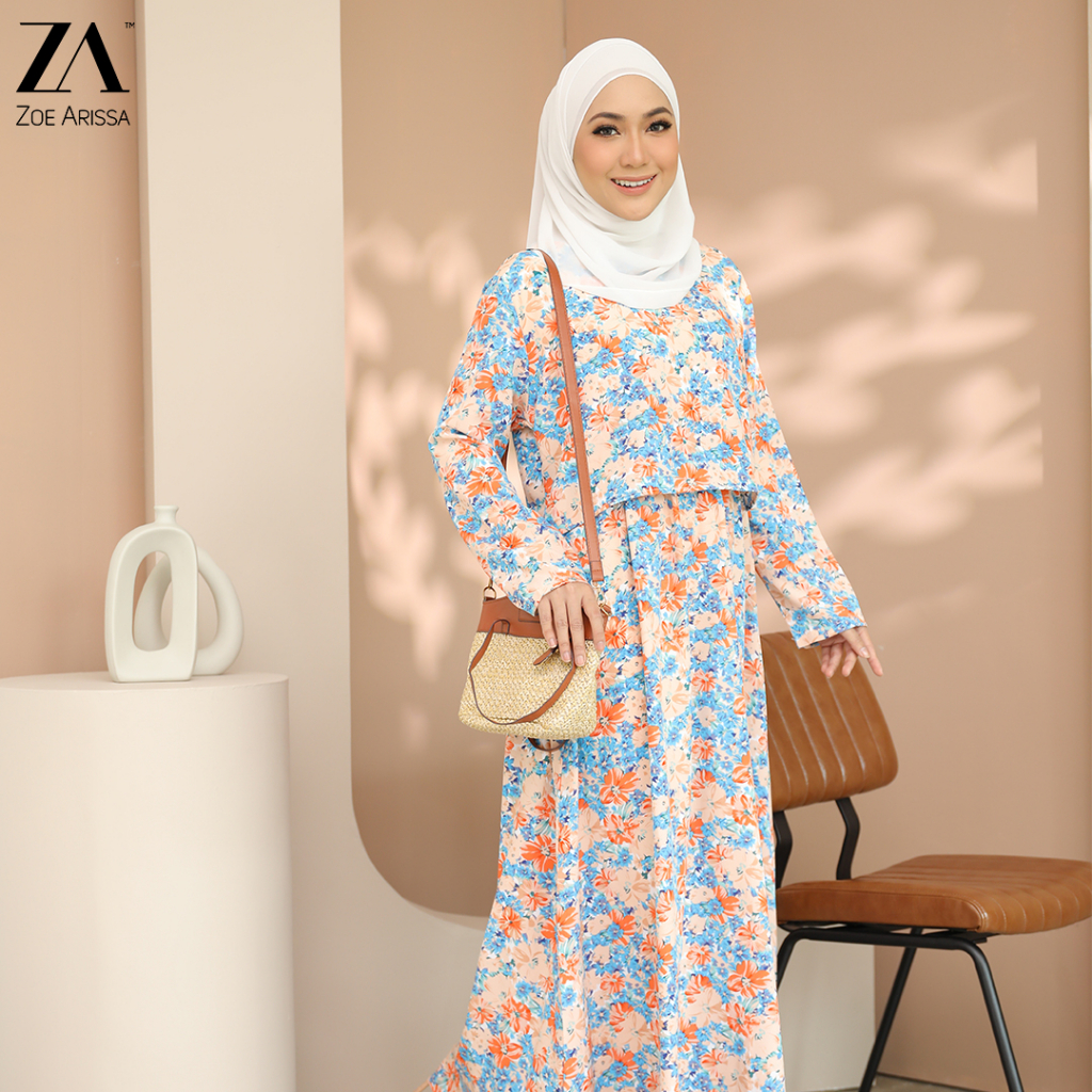ZOE ARISSA DRESS MUSLIMAH WOMEN DRESS Floral Printed Design Dress Korean Style Murah Ironless AAYRA Dress OneSuit